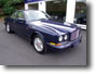 Finished in Peacock Blue with Sandstone Hide Piped in Royal Blue, Royal Blue Top Roll, Sandstone Knee Roll, Dark Blue Wilton Carpets and Sheepskin Over-Rugs, Burr Walnut Veneers, Service History.