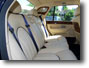 Analogue instruments, driver information panel, trip computer. Steering wheel mounted cruise control. Electrochromic self-dimming rear view mirror. Exterior mirrors dip on selection of reverse gear. Four way electronically adjustable front seats with 4 memory positions. Twin electric, independently adjustable rear seats. Two-stage seat heading and bi-lumbar support to four main seats. Electric rake adjustable steering wheel with automatic easy entry/exit feature - memory linked to driver's seat and exterior mirrors. Self-adjusting front seat belts. Picnic tables and magazine stowage to front seat backs. Heating, ventilation, and air conditioning system with side-to-side, split level (face/feet), front/rear temperature regulation, pollen and dust micro-filters, dehumidifier and residual heating. Twin drinks holders to front centre console and rear console. Dual mechanism electric window lift -one- touch open/close and linear. 4x85Watt radiot/cassette/6 CD autochanger audio system with remote control for rear passenger operation.