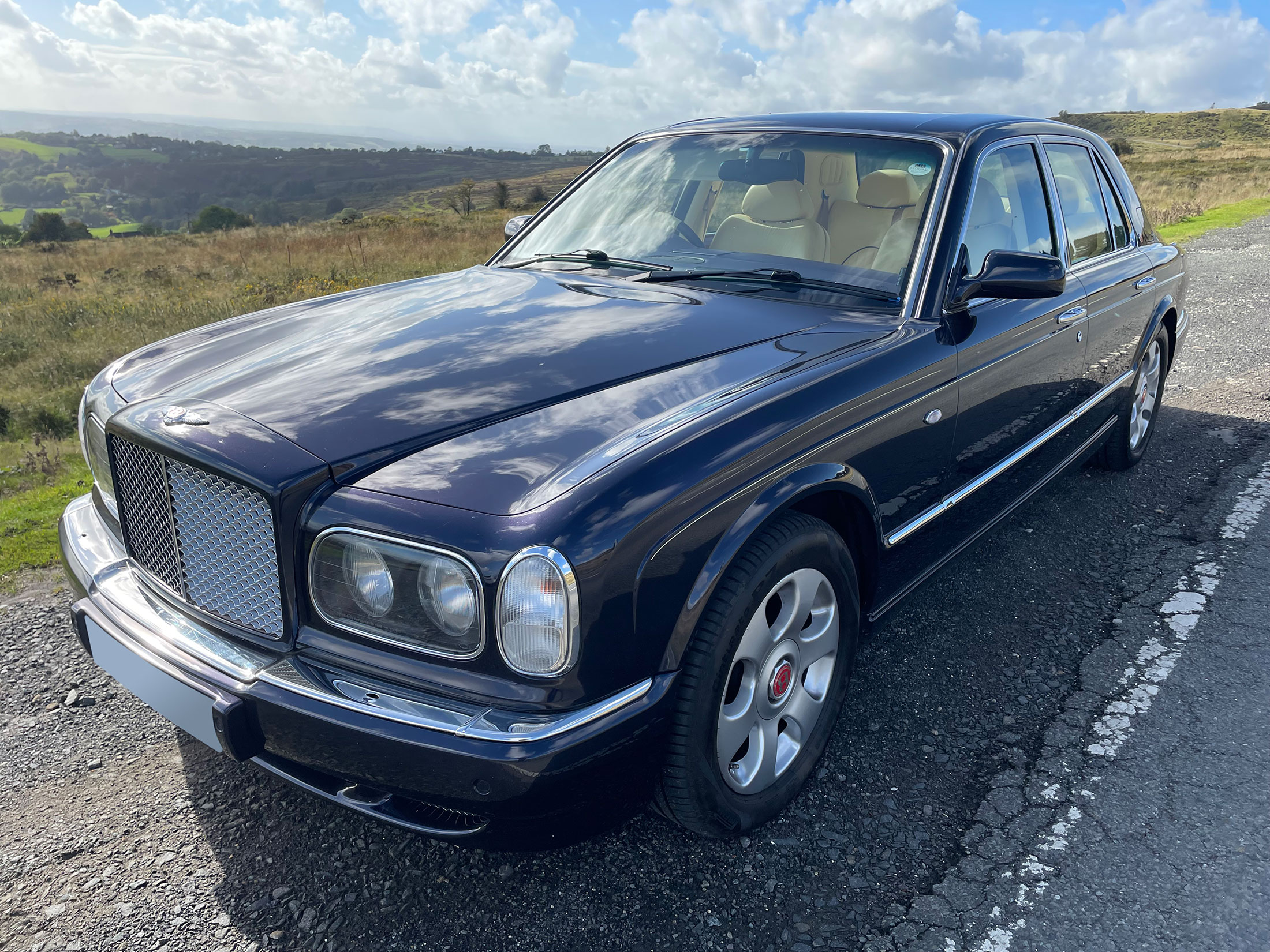 Newly arrived is an exceptional example of a Bentley Arnage Red Label. This incredibly low mileage motor car is finished in Amethyst blue with a single Magnolia coloured coach line. Six spoke Bentley alloy wheels are also fitted with red wheel badge centres which match the radiator and rear quarter badges. Interior is furnished with sumptuous leather throughout coloured in Magnolia with a contrasting Indigo coloured secondary hide. The seats are also piped in Indigo. Beautiful veneers are present throughout using burr walnut.