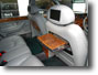 Analogue instruments, driver information panel, trip computer. Steering wheel mounted cruise control. Electrochromic self-dimming rear view mirror. Exterior mirrors dip on selection of reverse gear. Four way electronically adjustable front seats with 4 memory positions. Twin electric, independently adjustable rear seats. Two-stage seat heading and bi-lumbar support to four main seats. Electric rake adjustable steering wheel with automatic easy entry/exit feature - memory linked to driver's seat and exterior mirrors. Self-adjusting front seat belts. Picnic tables and magazine stowage to front seat backs. Heating, ventilation, and air conditioning system with side-to-side, split level (face/feet), front/rear temperature regulation, pollen and dust micro-filters, dehumidifier and residual heating. Twin drinks holders to front centre console and rear console. Dual mechanism electric window lift -one- touch open/close and linear. 4x85Watt radiot/cassette/6 CD autochanger audio system with remote control for rear passenger operation.